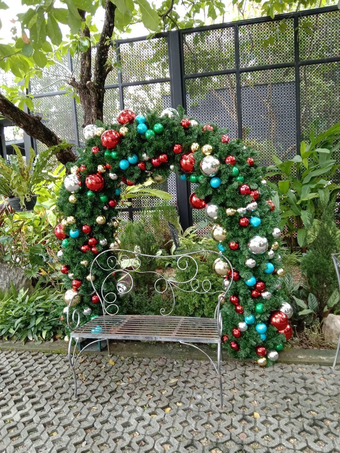 *ซุ้มคริสต์มาสที่ถูกตกแต่งด้วย สายสนคริสต์มาส ไฟประดับ และอุปกรณ์จัดแต่งที่หลากหลายชนิด อาทิเช่น ลูกบอลคริสต์มาส